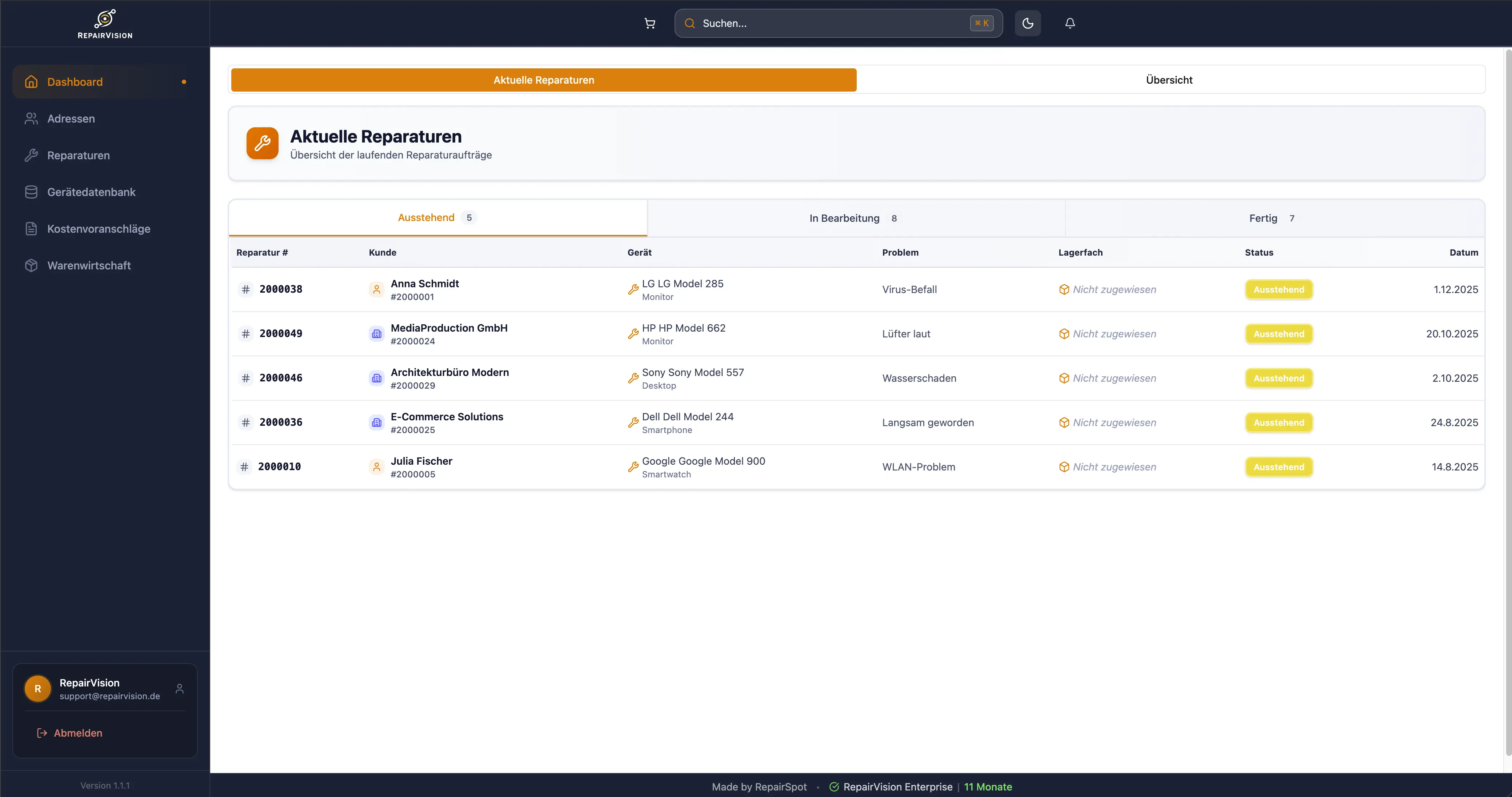 Von der Reparaturannahme bis zur Abrechnung – RepairVision vereint alle Prozesse in einer intuitiven Oberfläche.